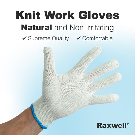Raxwell White Poly-Cotton Gloves - Premium Knit Work Gloves - 12 pairs